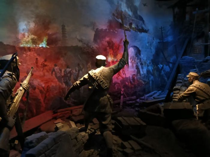 “峥嵘岁月”展厅里,历史的厚重感扑面而来。墙上照片定格滕州人民抗争瞬间,展柜中文物满是故事:锈迹斑斑的枪支镌刻烽烟,写满字迹的信件浸透热血。滕县保卫战展区里,场景复原的斑驳城墙、散落弹壳,与史料交织成悲壮长卷。我们仿佛看见川军将士“城在人在”的决绝,他们以生命筑就民族屏障,这份赤诚担当,正是红色基因最震撼的注脚。站在展区中央,历史的痛感与热血直击心底,让我们懂得红色基因从不是抽象符号,而是先辈以生命书写的精神坐标。