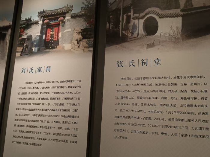 刘氏祠堂、张氏祠堂的介绍展板前,我们驻足凝视。刘氏祠堂始建于雍正年间,古朴庄严的建筑格局,藏着家族传承的温度;张氏祠堂奠基康熙年间,精巧雅致的结构里,沉淀着岁月变迁的故事。它们以砖石为骨、族谱为魂,承载家族记忆,更串联起滕州的文化脉络。我们逐字阅读建筑沿革,触摸到的不仅是家族兴衰,更是地域文化传承的坚实根系,明白文化传承始于对本土历史的珍视与解码。