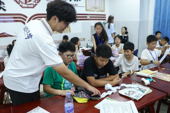 知识铺垫后,课上实验登场。三张纸带对折四次、胶带连接,从第一格写起数字,实践团依据行星到太阳真实相对距离,换算成格数,指导同学们标记。大家持笔,在对应位置画行星、写名称,教室里热闹非凡。当一条跨越 “千万里” 的 “行星带” 铺展开,同学们直观看到太阳系布局,真切理解宇宙尺度,感受天体间的遥远与奇妙。