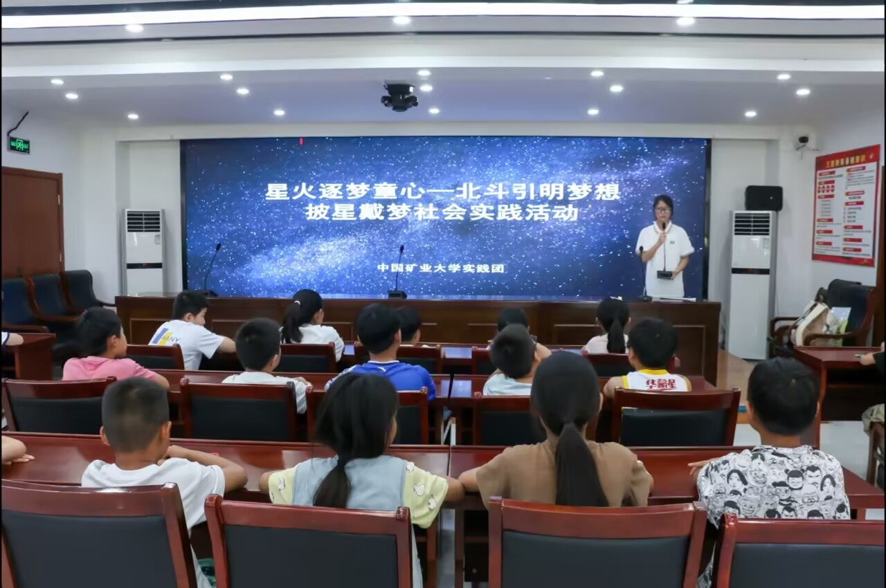 7月25日,中国矿业大学"披星戴梦"社会实践团队持续在安徽省灵璧县开展天文科普活动。继首日成功举办宇宙膨胀主题讲座后,团队进一步扩大科普范围,先后走进灵光村七彩课堂、鹿鸣学校和东北社区,通过多元化的科普形式,为当地青少年开启了一扇探索宇宙奥秘的窗口。