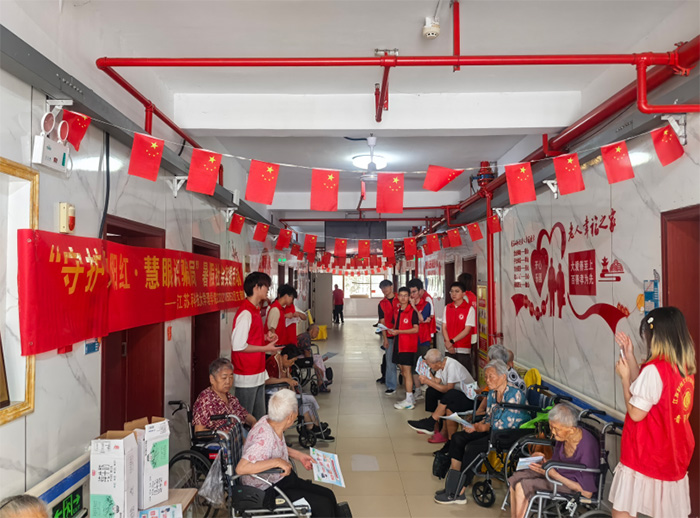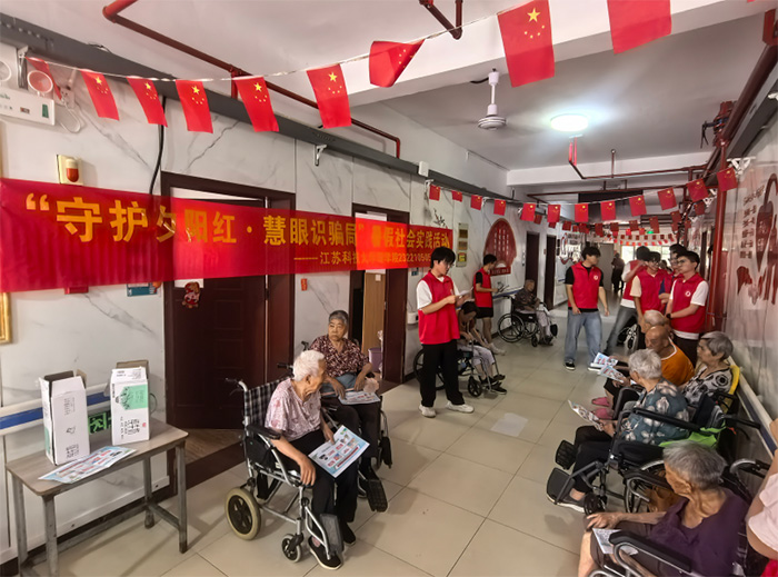 “您看,这种说免费领保健品,却要您先交高价快递费的,十有八九是骗局!”2025年7月26日下午,镇江市丹徒区西麓郁金香怡养院内暖意融融,来自江苏科技大学理学院2322105052团支部的大学生志愿者们正围在老人身边,结合精心制作的传单和生动案例,耐心讲解网络诈骗防范知识。开展着一场以“守护夕阳红・慧眼识骗局”——老年人网络诈骗防范指南为主题的社会实践活动。