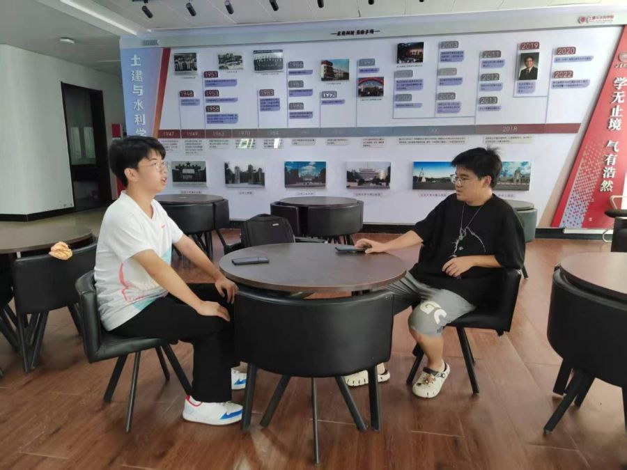 参观结束后,实践队与张恒、孙胤栋学长围绕智能建造发展与科研创新展开专题访谈。谈及未来方向,学长们表示,智能建造将在设计环节依托AI实现方案自动优化,施工阶段通过自动化设备与智能调度保障高效安全,运维阶段借助数字孪生技术实现预测性维护。在科研建议方面,他们强调需聚焦AI算法的行业适应性改进、BIM与AI融合技术攻关及智能实验平台搭建,加速成果转化。