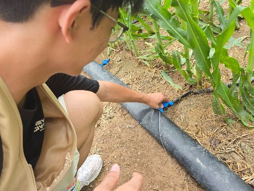 在德汇家庭农场,巡田机器人、无人驾驶拖拉机等智能农机已投入使用。负责人张有国介绍,依托这些装备,几十人可管理五千多亩土地,管理效率较传统模式有明显提升。实践队成员现场考察了农场的滴灌设施,详细询问运营及盈利情况,了解智慧农机与节水灌溉技术结合的实际应用效果。