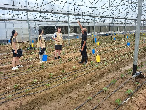 当日下午,实践队转至齐源绿季鲁盛智慧农业产业园。据负责人介绍,该园区以有机蔬菜种植为主,布局5种不同类型棚型,整合应用滴灌与水肥一体化技术,通过订单模式与企业建立长期合作。