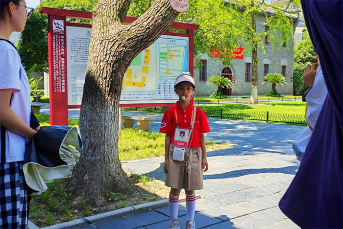 图5实践队偶遇三年级小学生在中共五大会址纪念馆讲解(廖可欣摄)