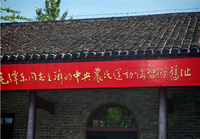 从毛泽东旧居步行不远,便是中央农民运动讲习所旧址纪念馆。红巷13号的大门庄重而肃穆,门匾上“毛泽东同志主办的中央农民运动讲习所旧址”几个大字在阳光下熠熠生辉。