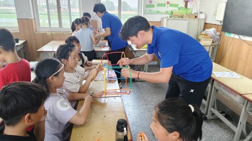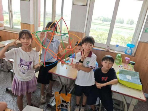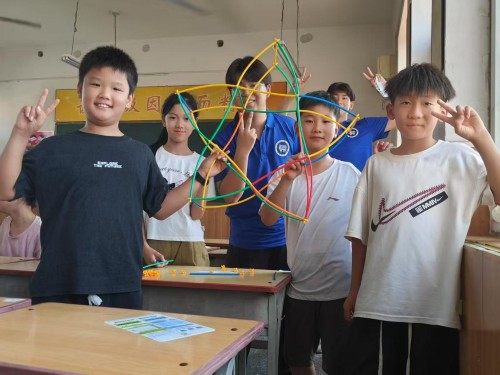为激发学生创造力、专注力与动手实践能力,团队精心组织了创意手工课程。课程中,成员们分组指导孩子们利用吸管进行创作,重点教授爱心与五角星的弯折技巧与稳固组装方法。他们耐心讲解、细致示范,并手把手引导孩子们动手操作。小朋友们全神贯注,一步步跟随指导,努力将手中的吸管塑造成理想的形状。当亲手制作的爱心和五角星成功成型时,孩子们脸上洋溢出满满的成就感和喜悦的笑容。这一过程有效锻炼了孩子们的精细动作能力、空间想象力,并让他们在亲手创造中收获了自信与乐趣。
