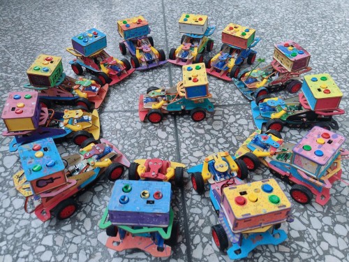 图为孩子们的小车成果展示。大学生网报通讯员孙佳伦供图