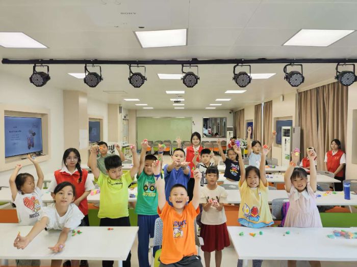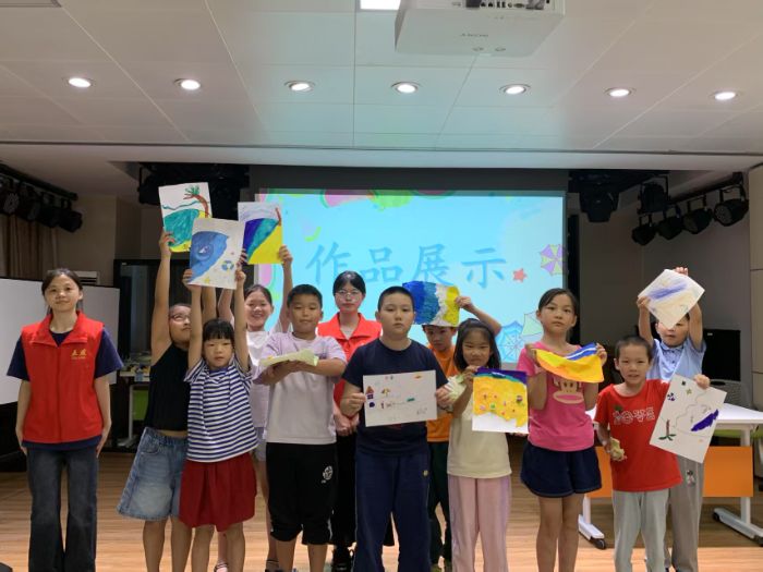 伴随着盛夏的蝉鸣与微风,广东省外语艺术职业学院基础教育学院五燕戏剧团支教队于2025年7月14日至7月25日,在广州市天河区元岗街道开展了为期两周的暑期托管实践活动。本次实践活动积极响应国家关于青年学生投身社会服务的号召,以“双语戏剧+生命教育”为主题,五燕戏剧团支教队紧扣主题,向学生们开展了粘土、纸杯风车、非遗翻花、漆扇、绘本制作、诗画创作、绘画等丰富多彩的手工课程。手工创作不仅能提升学生们的动手与创新能力,更能在实践中引导他们于指尖流转间体悟生命的深邃与多元,在创作中厚植对生活的热爱与对生命的敬畏。这些手工课程让热爱生活的种子在实践中生根发芽,为成长为有温度、有创造力的时代新人播撒精神火种。