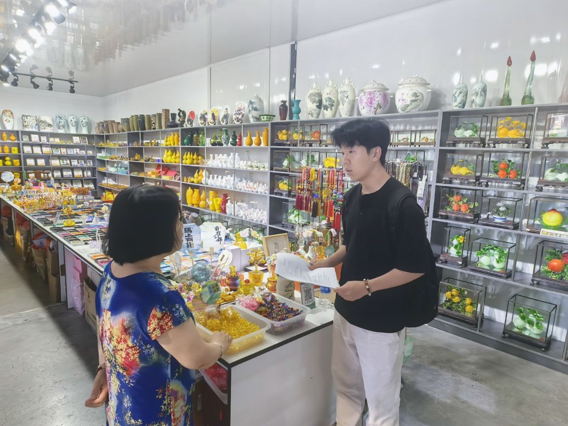 2025年7月27日,窑火琉光实践队前往颜神古镇和博山琉璃大观园通过参观访问和采访调查了解琉璃的制作过程和人们对琉璃的认知程度及市场消费情况,以此了解琉璃文化知识,进一步向公众宣传琉璃知识。
