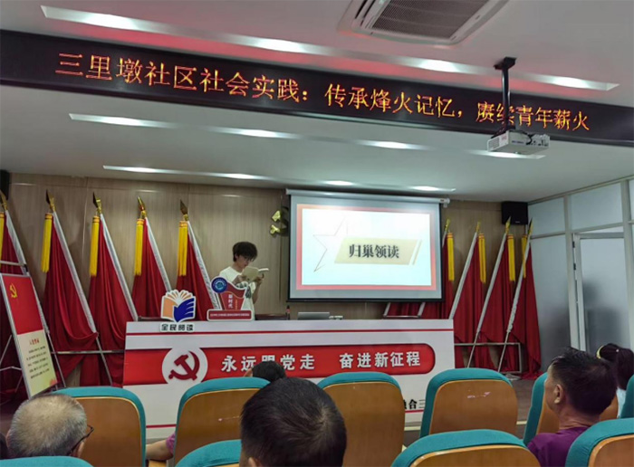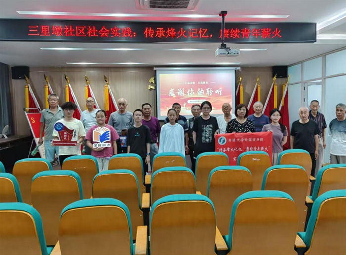 7月27日,南通大学“传承烽火记忆,赓续青年薪火”实践小分队来到崇川区三里墩社区,开展了一场以“烽火中的文化力量——中国抗战文化回顾与传承”为主题的“烽火岁月·抗战精神寻根行”实践活动。此次活动旨在挖掘抗战历史肌理,传承红色精神血脉,通过PPT宣讲、有奖知识竞答等形式,向社区居民普及抗战文化知识,弘扬伟大的抗战精神。