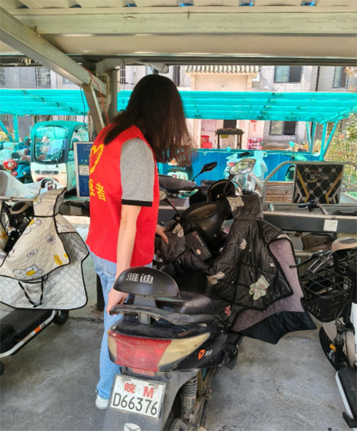 图为团队成员整理楼道内违规停放的车辆 廖小玉 供图
