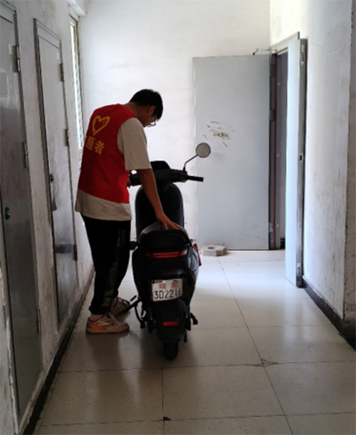 实践的七天里,这支由计算机与信息工程学院学子组成的小分队,用脚步丈量社区每一条道路,用双手改变每一处乱象。第一天与龙池社区负责人深谈,他们摸清了“道路成停车场、楼道变车棚”的症结;第三天手绘停车地图时,铅笔线条里藏着对“便民”与“畅通”的权衡;第四天竖起的停车标识牌,红白色的警示里写着“规范”的边界;第六天分组整治时,汗水浸透的衣衫见证着他们如何耐心劝说车主,如何合力将无主车辆移至划定区域,如何将楼道里的自行车一辆辆搬至分类车棚——那些曾经堵塞生命通道的“障碍”,在青春的手底变成了整齐排列的“风景”。