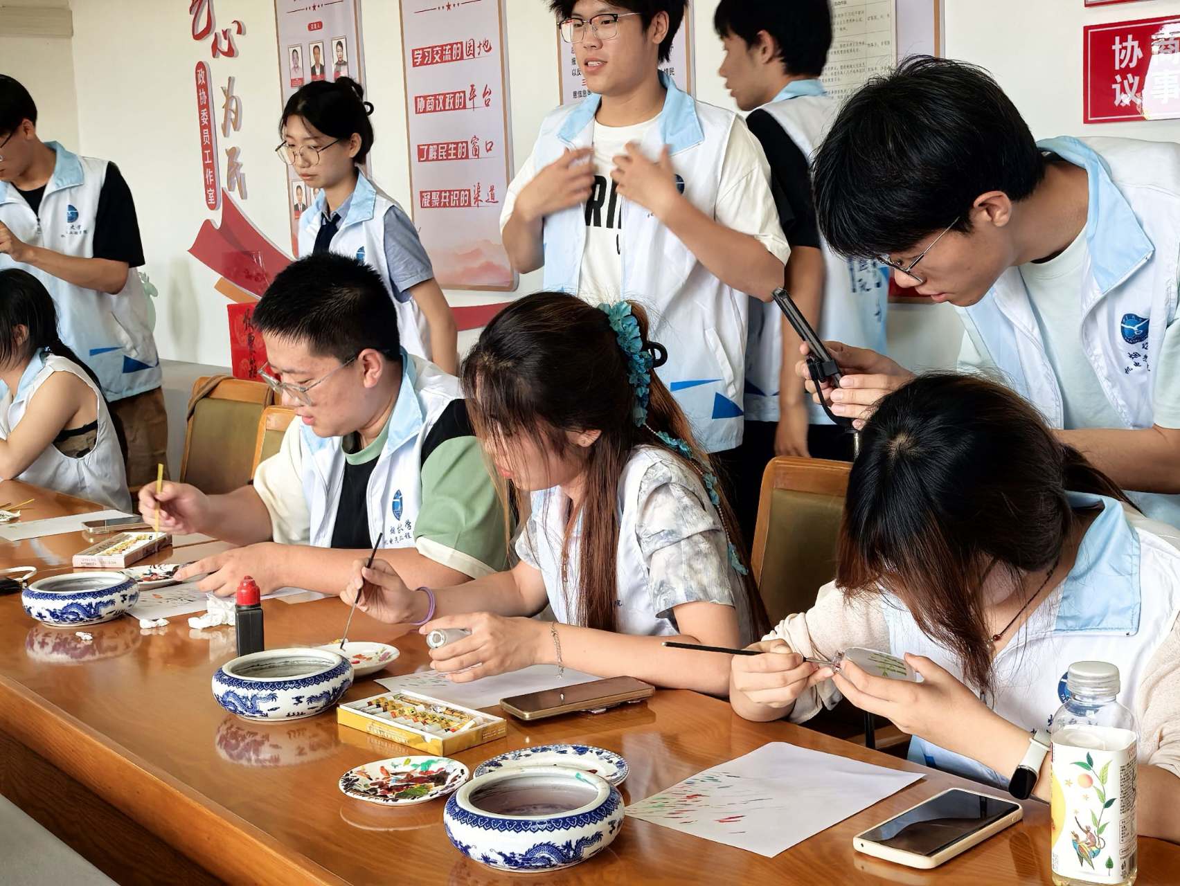 下午,实践队来到张广庆内画艺术研究院。在工作人员的指引下,队员们现场观摩了王亮老师傅的内画创作:只见老师笔尖微动,几只生动的蝈蝈便跃然瓶上。随后,队员们参观了展厅,欣赏到不同大师的精美内画作品,进一步领略了鲁派内画的艺术魅力。为更深入体验这项技艺,队员们尝试亲手制作内画,却纷纷感叹这是一项“大工程”——难以克服的手抖、看不到的笔尖,让大家切实体会到鲁派内画的精妙与不易。 最后,我们实践队还采访了张路华大师,通过与大师的深入交流,队员们对鲁派内画的历史传承、技艺特点及文化内涵有了更为全面而深刻的了解。