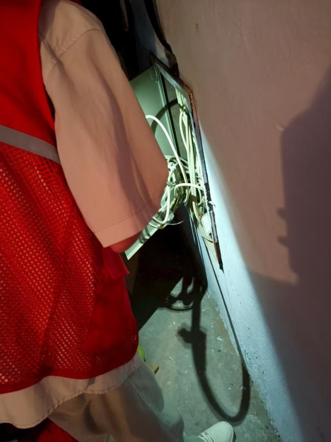 随后队员又对电箱进行检查,观察是否有除电线外的杂物堆放,有无私接电路,看电路设备是否老化等,防止电路问题而影响的火灾发生。
