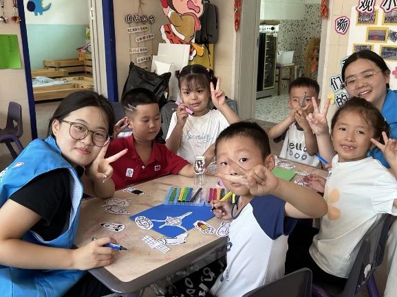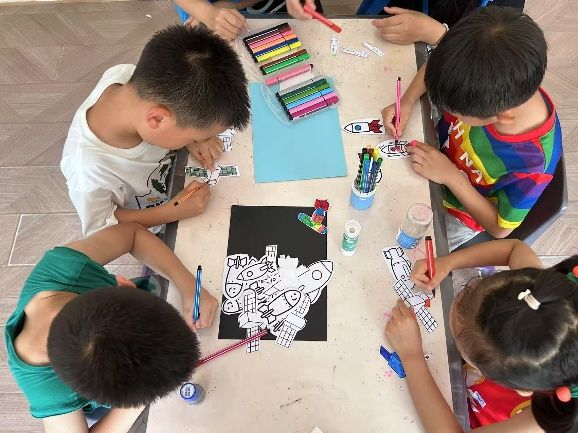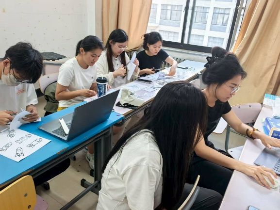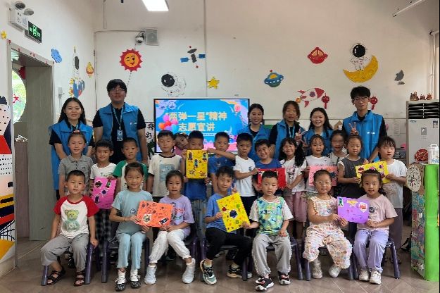 为夯实宣讲基础,团队进行了充分准备。前期培训中,指导老师为团队廓清了宣讲方向;“到梦空间”平台上的网课学习,帮助队员们从老一辈科学家事迹中汲取力量,立下宏志;线下研讨会上,团队针对不同受众量身定制各项方案,碰撞思维火花——走进宣讲第一站幼儿园,小朋友们被量身定制的“两弹一星”吉祥物印章、贴画和导弹卫星图纸所吸引、踊跃创作时,我们确信,以童趣化、具象化的方式播撒精神火种,是点燃幼儿爱国情怀与科学梦想的有效启蒙路径。宣讲结束后他们眼中闪烁的对“两弹一星”的初识光芒,是对整个团队用心最好的回馈。