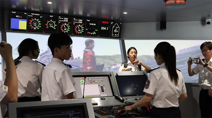 (图3:实践队体验青岛引航站智能船舶操纵平台,感受航运新质生产力。苏佳怡 供图)