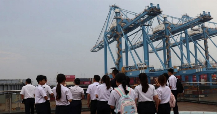 (图4:“智思领航4.0”实践队在青岛港平台观看自动化码头作业。张闻柏琳 供图)