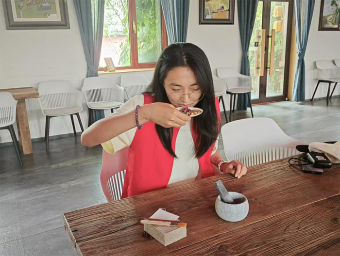 艺术气息弥漫的竹梦村呈现了文旅共生的新实践。队员与村民一同体验了香囊制作。这一传统手工艺已转化为受欢迎的文旅体验项目,既让游客感受民俗魅力,也为村民开辟了增收渠道。让艺术为乡村注入活力,最终目标是游客愿意留下来,村民真正得实惠。竹梦村“文化+产业+富民”的融合模式,成为艺术赋能乡村文旅的典型范例。