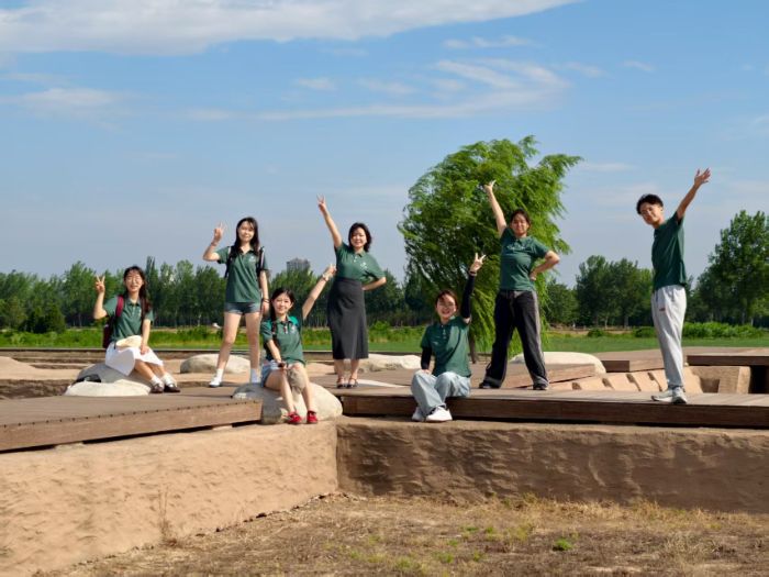 实践征程始于汉长安城未央宫国家考古遗址公园。队长秦梓逍引导队员沿前殿遗址夯土台基实地踏勘,综合运用徒步观察、无人机航拍及文献研读,系统采集遗址空间布局、夯土层理及基址形制信息,深入解析“前朝后寝”功能分区与“天人合一”的营建理念。在汉城湖旅游风景区,队员们对比历史文献与现状景观,观察仿汉建筑群的飞檐斗拱,思考生态修复与遗址保护的协同发展模式。