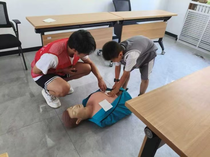 7月30日,山东大学(威海)山海“博时急救”宣传团在山东省威海市环翠区怡园街道金海滩社区成功举办了“救在身边,安全一夏”急救主题宣讲活动。此次活动旨在提升社区居民,尤其是小朋友们的急救知识水平和应急处理能力,通过理论讲解、实操演示、互动游戏等丰富形式,让大家在轻松愉快的氛围中掌握心肺复苏、自动体外除颤器(AED)使用等实用急救技能,为构建安全社区贡献力量。