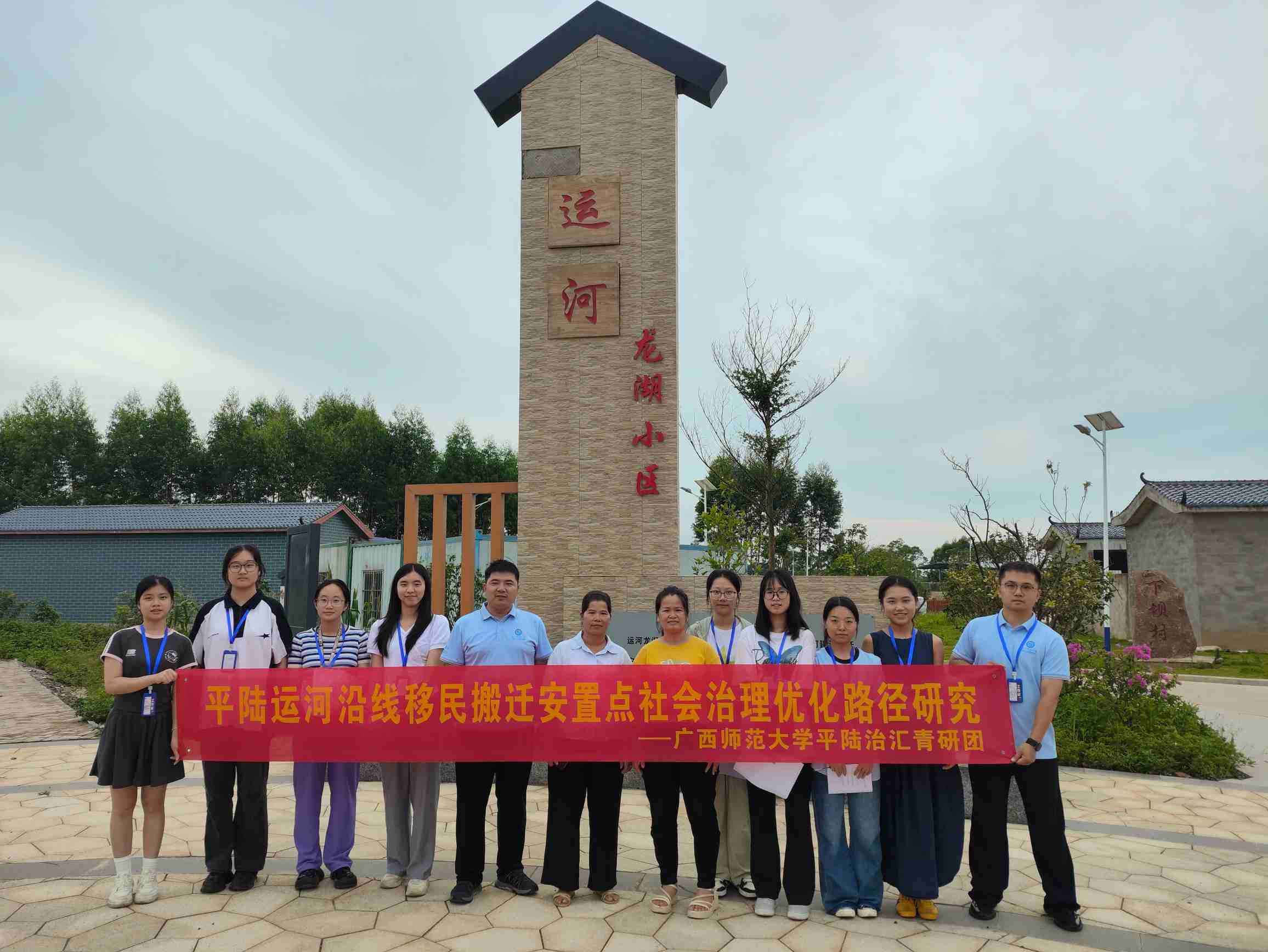 平陆运河是新中国成立以来建设的第一条通江达海的运河工程,也是西部陆海新通道的骨干工程。为有力推进基层治理体系和治理能力现代化建设,广西运河研究院、平陆治汇青研团在平陆运河沿线移民搬迁安置点开展社区治理优化路径调查研究工作。2025年7月14日至17日,广西师范大学徐其龙副教授带领硕士生李文奇、李嘉晰、陈燕飞、何彦芸以及5名本科生,前往广西钦州市、横州等市县,对平陆运河沿线搬迁安置点社区治理的设计规划、现实状况以及所面临的困境等方面进行了全面且深入的考察。