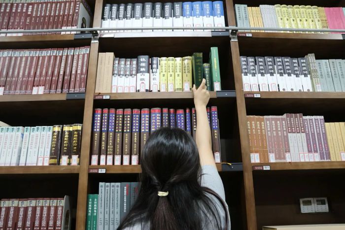 7月2日下午3点,“壮典薪火调研团”参观广西壮族自治区博物馆里的瓯骆书房。踏入瓯骆书房,映入眼帘的是一排排整齐林立的古籍书架,团队成员就在这些书架间探寻,用指尖划过一本本壮族古籍;在静谧的书房里围坐阅读,让古籍成为青春与历史对话的媒介。除了阅读古籍,团队还在瓯骆书房里认识了修复古籍所用的材料与工具:皮纸与竹子,经折装与卷装、镊子,剪刀,针线,刷笔,锤子。这些材料与工具让队员们认识到古籍修复的不易。