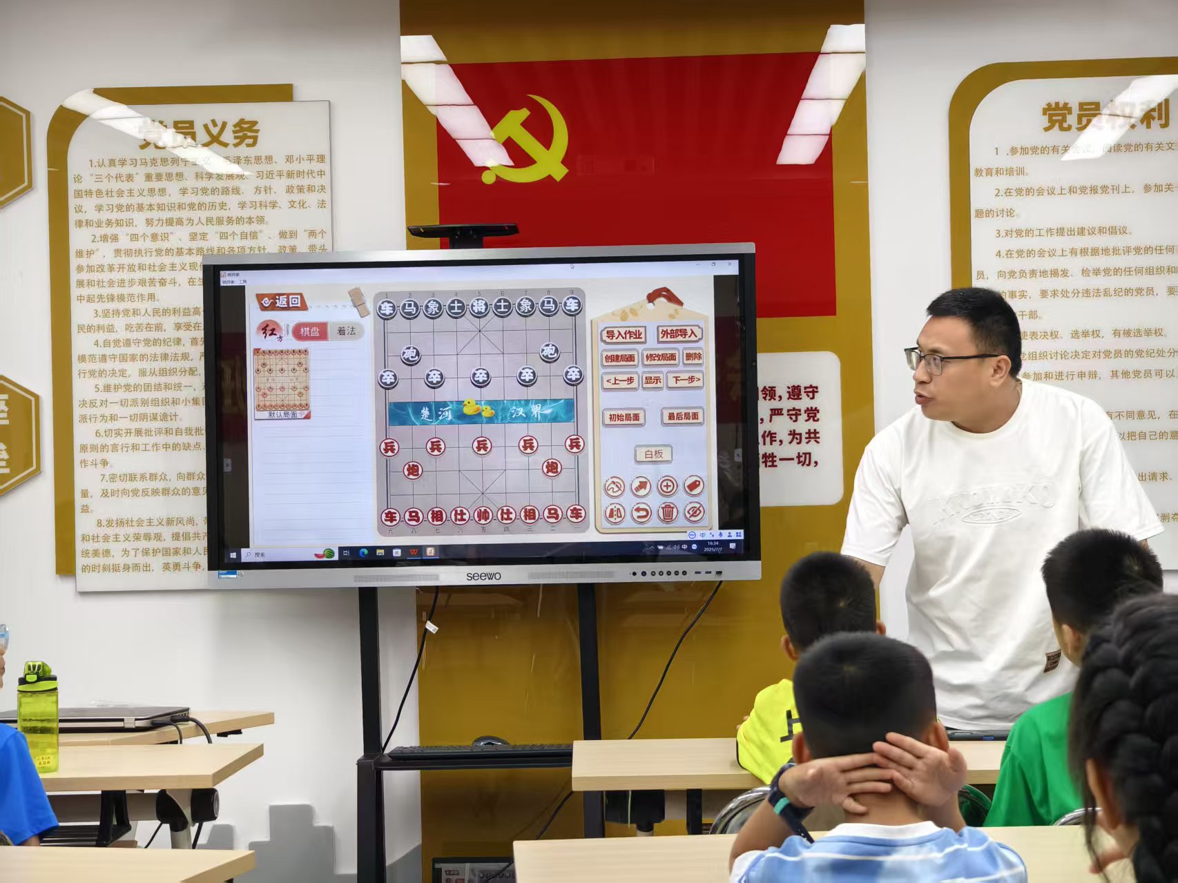 紧随魔方课的便是象棋课。老师先带领孩子领略不同杀法,再将技巧运用在实践中,以两两组队的方式进行动态排名比赛。