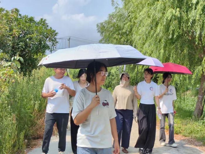 饭后,孔同学主动邀请团队在家乡附近转转。边走边介绍时,她自豪地向大家讲解了家乡近几年的显著变化,开心地分享国家政策赋能乡村的点点滴滴。她提到,曾经坑洼难行的土路,如今已修成平整的水泥路,连通了家家户户;路旁新建了绘有乡村振兴愿景的文化宣传栏;在破旧农舍的旁边,能看到新建的安居房正在拔地而起。孔同学介绍道,过去道路泥泞、垃圾随意堆放,雨天出行困难且环境差。如今,得益于乡村环境整治等国家政策的扶持,整个生活环境已经发生了巨大的改善。