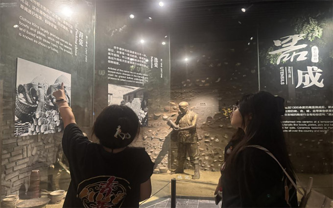 参观过程中,实践队员不仅仅专注于文物本身的历史与艺术价值,更将目光聚焦于非遗传承的当下境遇。为深入了解磁州窑烧制技艺的传承现状,实践队员近距离参观馆内磁州窑工艺烧制的还原场景,同时与馆内负责非遗保护的工作人员展开深入交流,详细询问这项非遗文化传承人的培养模式、现代技术对传统工艺的影响以及磁州窑文创产品的开发情况,从多个维度了解这项古老技艺在新时代面临的机遇与挑战。通过交流学习,让实践队员更直观地感受到磁州窑技艺的厚重底蕴,促使其思考非遗传承与时代发展的深层联结。