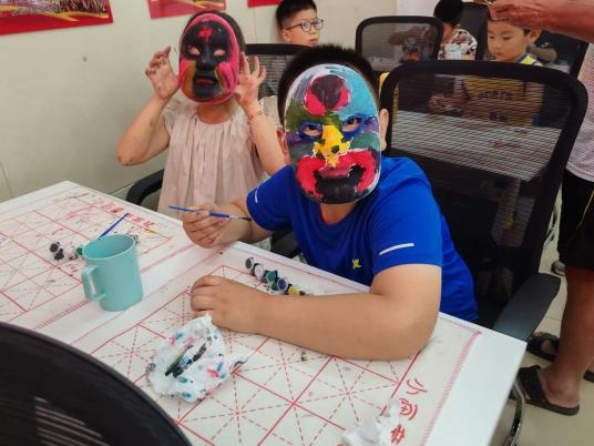 活动室里,专注创作的身影和缤纷的色彩交织成一道独特的风景。当孩子们举起自己绘制的脸谱合影时,自豪的笑容与鲜艳的图案相映成趣。