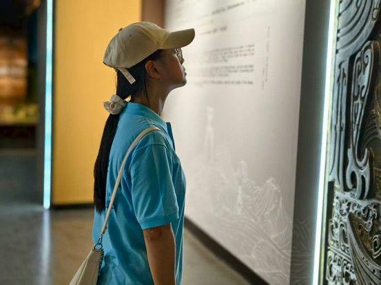 博物馆内,团队依次探访"商文化展厅"等六大主题展区,深度感知中原文明的厚重底蕴。最令人动容的是"汉代画像石展厅"。队员们细细观察石刻上的场景,当看到这些石刻是古人'视死如生'的陪葬品时,几名队员默默向石刻行注目礼。
