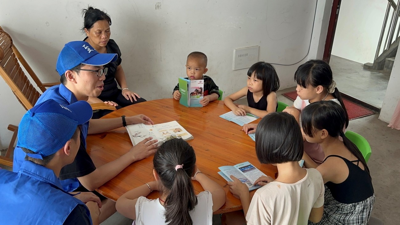 当日下午,实践队移步湾岛村,阳光透过茶树叶隙洒下斑驳光影。队员们的身影出现在休闲凉亭,与在此纳凉的村民们拉起家常,用通俗易懂的语言解释“防诈骗”术语、提醒“防溺水”安全知识,让政策法规深入人心。当村民们笑着表示“你们讲的话,我们都听得懂”时,队员们适时引导:“今后咱们在茶叶买卖、走亲访友时,若能用普通话交流,生意会更顺畅,情谊也会更亲近呢!”