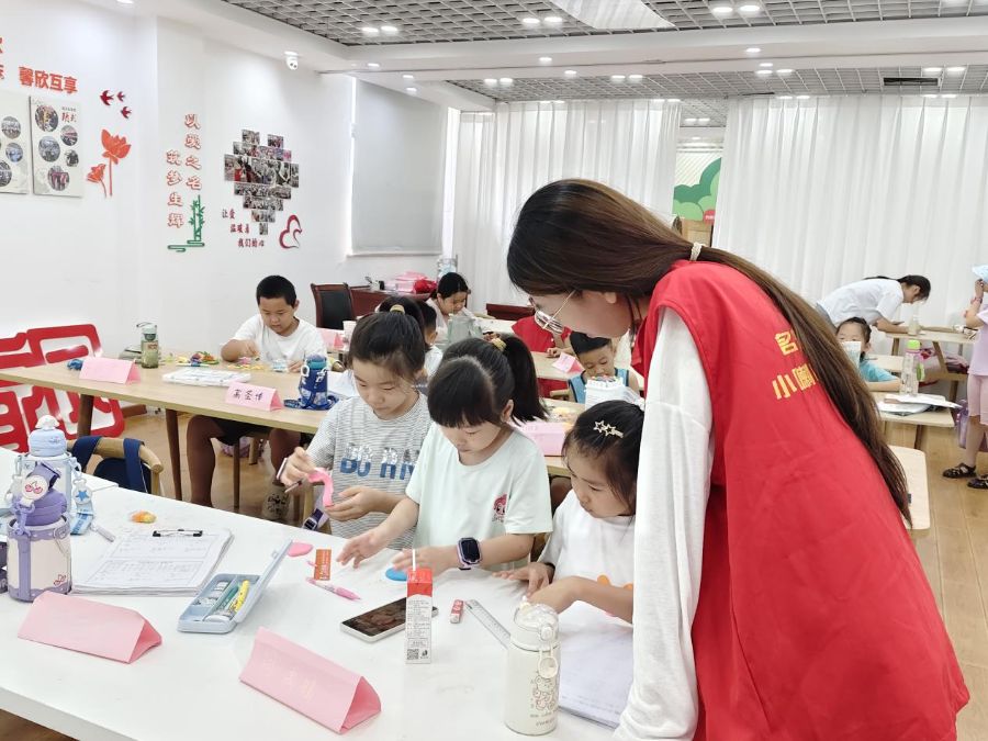 随后的济南面塑教学环节更是精彩纷呈。志愿者拿出提前用粘土制作的“小面人”,从揉面的力道、塑形的技巧,讲到老艺人如何用一双巧手赋予冰冷面团鲜活生命的神奇过程。生动的讲解与鲜活的实物展示,让孩子们瞬间产生了浓厚兴趣,纷纷凑近围观,一个个跃跃欲试,迫不及待地想亲手创作一个属于自己的“有生命力的面人”。在志愿者的耐心指导下,孩子们稚嫩的小手忙碌起来,粘土在他们手中渐渐变成了形态各异的形象——有脚踏风火轮的哪吒,有憨态可掬的大白,还有各种奇思妙想的小创作。尽管这些作品的做工略显稚嫩,却充满了童真与创意。看着眼前的场景,志愿者不仅回忆起自己的童年乐趣,更深刻体会到作为“教学参与者”的责任与意义,那是一种将热爱与知识传递下去的使命感。