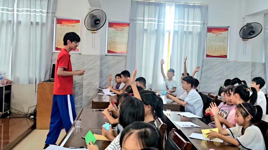 7月10日-12日,繁星筑梦社会实践团队在城群村村委会议室开展了暑期公益支教志愿服务活动。实践队志愿者担任授课老师,课程内容丰富多样,涵盖数独、手工、硬笔书法、绘画等。其中,书法课以《七律长征》为范例,孩子们在笔墨间感悟长征精神;绘画课围绕爱国主题,用画笔勾勒对祖国的热爱。支教活动不仅为孩子们带来了知识和欢乐,更在他们心中播下了智慧的火种,激发了他们对学习的热情和对未来的憧憬。