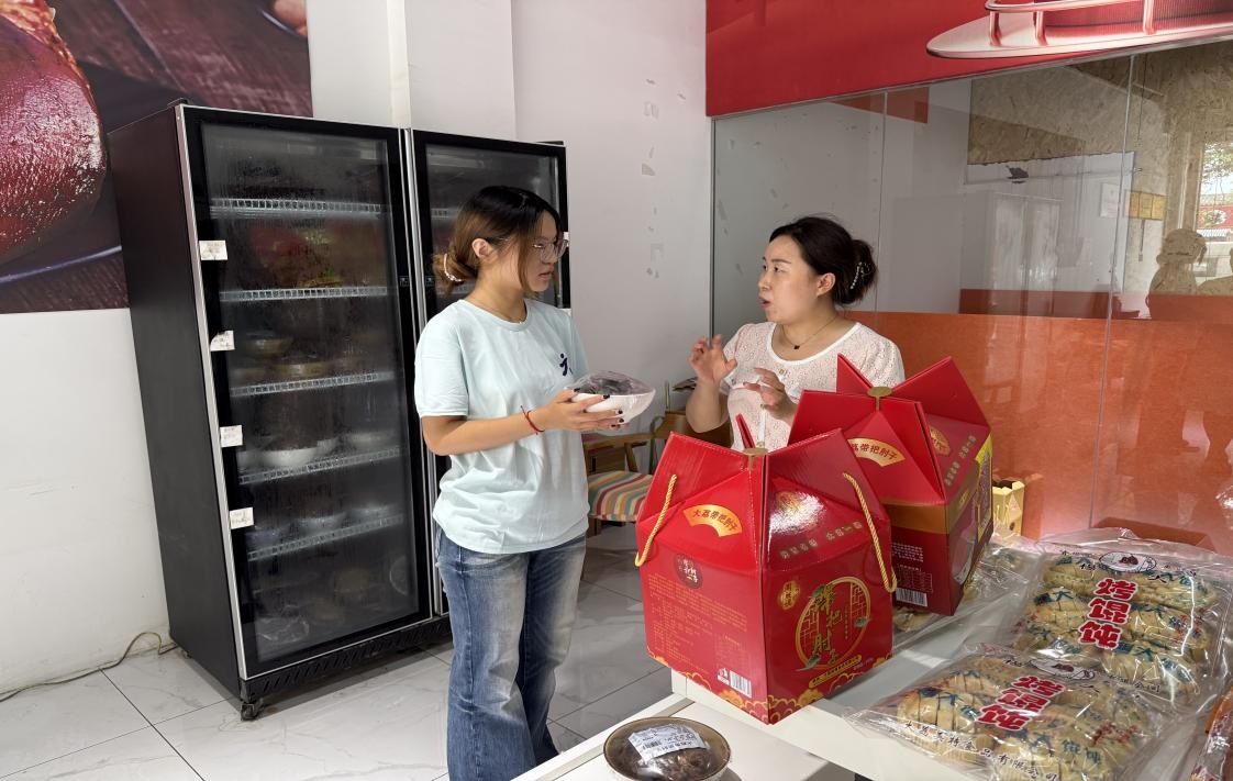 7月10日,实践团首站走进大荔非遗展览馆,展馆内丰富的展品和详细的介绍,让团队成员对大荔地区的非遗文化有了更宏观的认识,感受到当地非遗文化的深厚底蕴。随后,团队来到大荔胜旗食品有限公司。团队成员与企业负责人周胜旗深入交流,员工李莹萍详细介绍了肘子的生产流程与工艺特点,让大家对当地特色非遗食品制作有了初步认识。