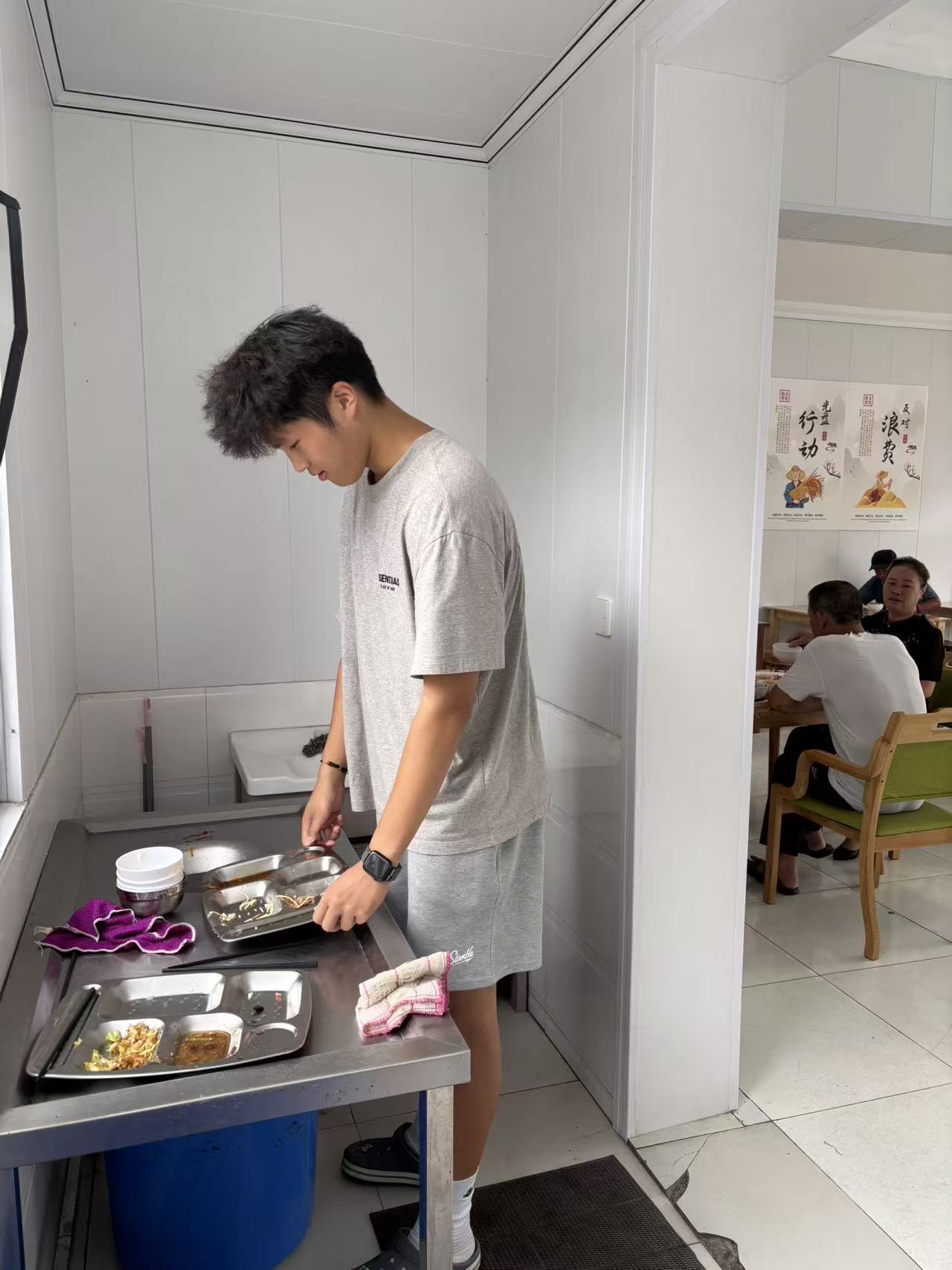 随后,成员们转型为“银发暖心人”,助力社区银发助餐服务。他们提前抵达社区食堂,协助工作人员清洗食材、分装餐食,仔细核对老人的订餐信息。送餐环节中,大家拎着温热的餐盒,挨家挨户送到行动不便的老人手中,还会耐心询问老人的饮食需求,陪老人简单聊天解闷。从生疏地打包餐食,到熟练地与老人沟通,学生们不仅用热气腾腾的饭菜传递温暖,更在与长辈的互动中学会倾听与关怀,实现“以劳增智、以爱暖心”。有同学说:“原来志愿服务不只是完成任务,更是用真心连接社区、用行动传递善意的课堂。”