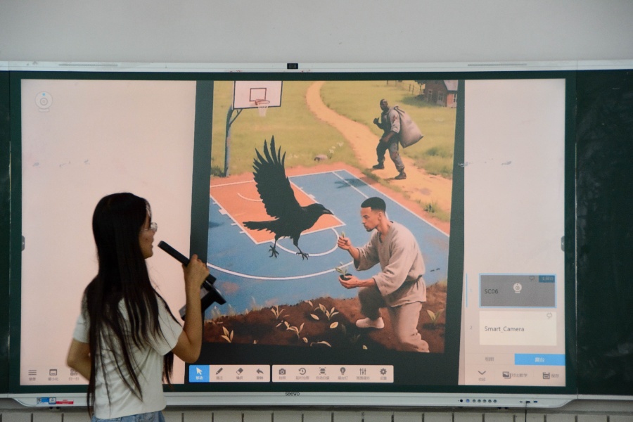 娄钰老师以AI工具为切入点,向同学们介绍了这种能模拟人类智能、通过多种指令辅助完成任务的软件。AI工具类型丰富,涵盖文字处理、图像生成等,广泛应用于绘画、医疗、教育等领域。课堂上,师生围绕乡村可持续发展展开讨论,从生态保护、产业融合、宜居环境等多角度共同勾勒出绿色乡村的未来蓝图。