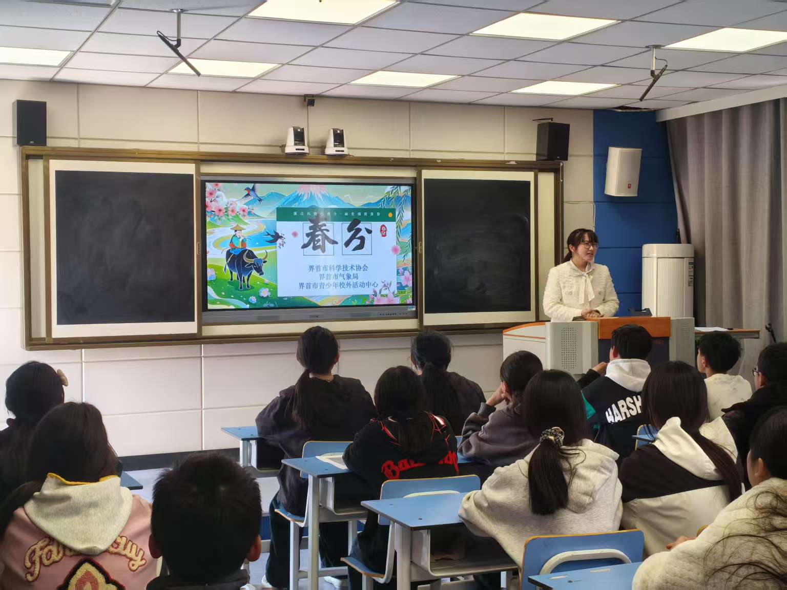大学生网报阜阳市3月22日电(通讯员 荣佩琪)2025年3月20日,正值春分时节,天暖花开,万物复苏。由界首市阳帆志愿者协会主办的,邀请界首市科协、界首市气象局、界首市青少年活动中心协助开展了一场科普进校园活动,活动地点在安徽省阜阳市界首市靳寨中学,活动对象为靳寨中学七年级学生。安徽中医药大学的荣佩琪同学积极在志愿汇报名此次科普活动,为专业人员维持秩序和保障后勤做好防备工作。此次活动在下午三点开始进行,分为科普讲解,气象绘画和实地勘测三部分组成。活动过程中学生们积极询