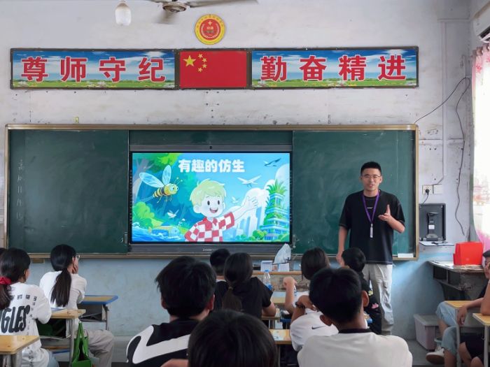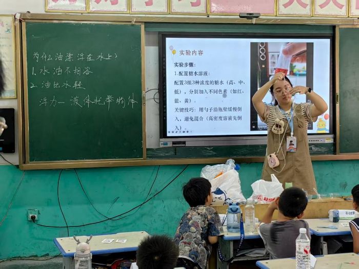 在河南商丘,实践队员扎根乡村课堂。7月12日至8月13日,徐可昕在包公庙小学以STEAM理念开设跨学科课,用低成本材料设计土电话制作、彩虹瓶实验等活动,破解年龄跨度大、抽象知识难理解等教学难题,兼任班主任期间与学生结下深厚情谊;7月8日至18日,张博阳在睢县乡村小学调整课程内容,开设“动物大侦探”“有趣的仿生”等生物学课,借蛋壳承重实验、法庭辩论等形式教学,既关注乡村教育现状,也反思了课程设计不足。
