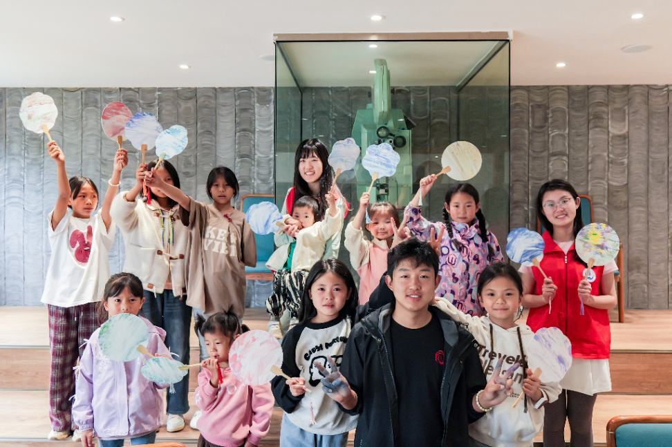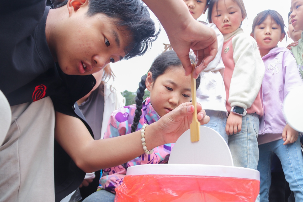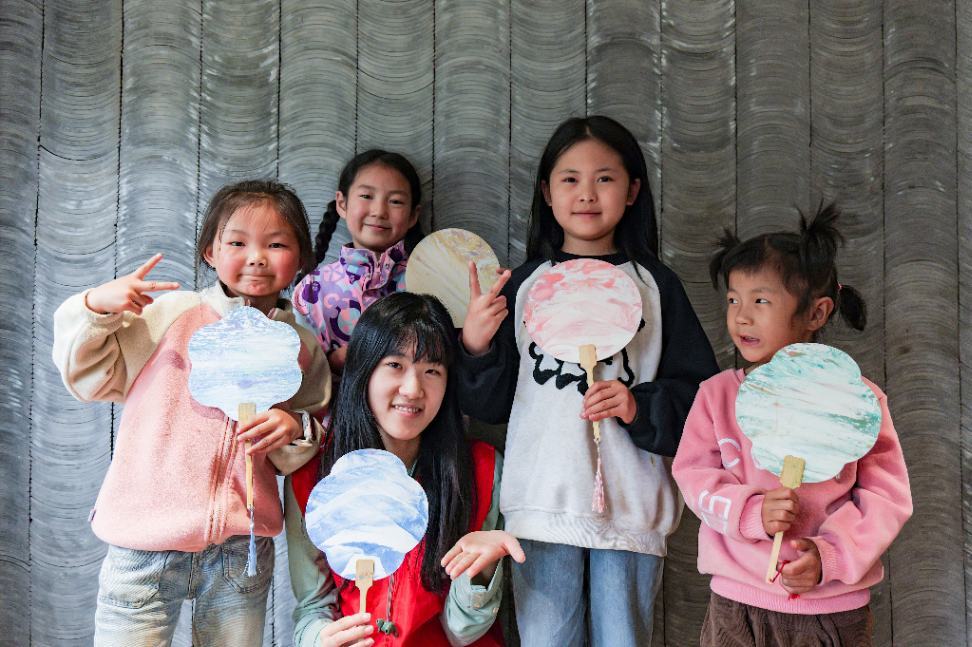 本次漆扇课是“美·黔彩长韵”模块的创新实践。课程负责人宁亚楠阐释深层价值:“在一次次挥舞与抖动的过程中,色彩之美映于扇面,与此同时美育也随着种种色彩悄然扎根于孩子们的心中,激发他们对美的探索与追求”当多张漆汇成集体照的背景,美的教育已悄然融入乡村振兴的未来图景。