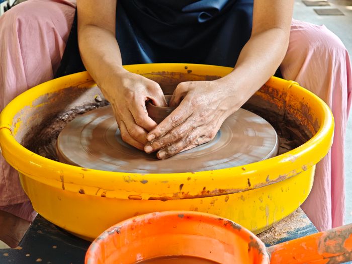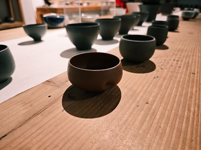 首先,团队成员们深入海陶艺术馆进行参观学习。在讲解员的引导下,同学们系统地了解了洞头海陶的起源、发展历程、制作工艺及其背后蕴含的海洋渔耕文化。从选泥、拉坯、雕刻到烧制,每一道工序都凝聚着匠人的智慧与心血。大家对海陶在造型和纹饰上的创新表现出浓厚兴趣,许多作品巧妙地将海螺、贝壳、鱼群等海洋元素与现代审美相融合,既保留了传统神韵,又充满了时尚气息。通过这一阶段的学习,同学们深刻认识到,海陶不仅是一种精湛的技艺,更是一部生动的海洋文明史诗。
