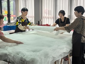 图为桐乡蚕丝被制作过程