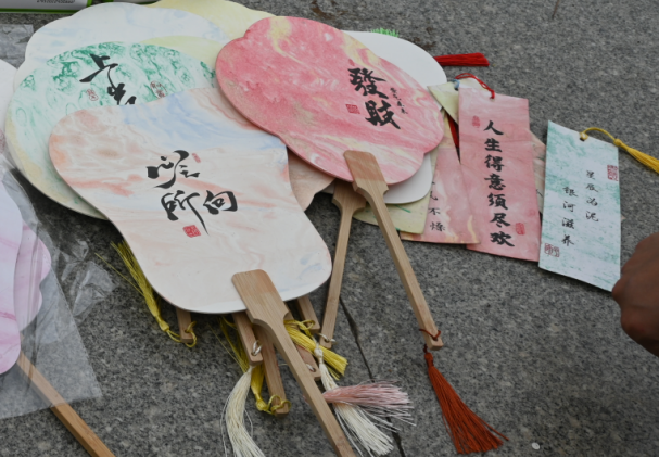 实践队创新性地将传统漆艺与现代创意相结合,运用天然大漆制作出纹理各异的漆扇和书签,让游客在亲手体验中感受非遗魅力。“每一把漆扇的纹理都是自然流淌形成的独一无二图案”,队员一边演示一边向游客讲解大漆工艺的精髓。