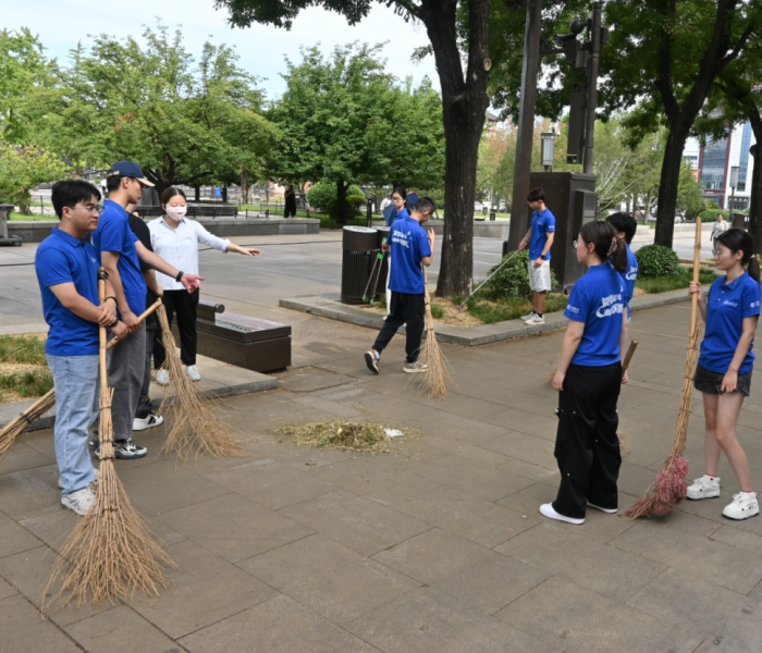 在38℃的高温环境下,“盛唐拾光实践队”的队员们首先开展环境清洁行动。他们手持工具仔细清理北广场青石路面上的落叶和杂物,汗水浸透衣衫仍坚持作业,让千年古塔周边环境焕发新颜。队员们弯腰捡起的不仅是垃圾,更是对千年文明的一份敬意。