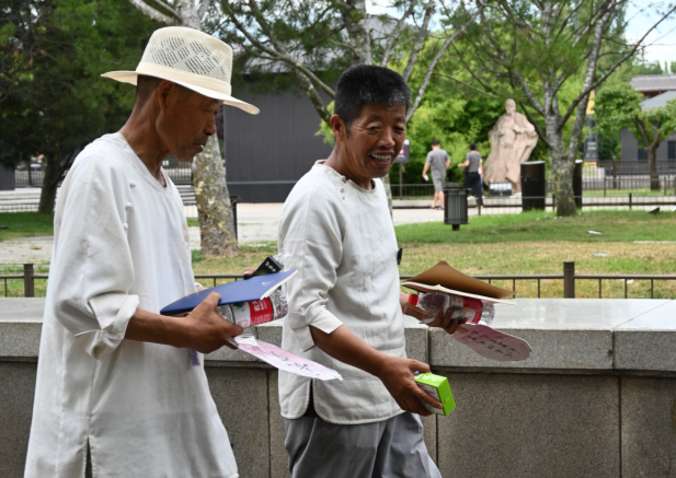 除了文化体验,队员们还化身“清凉使者”,向环卫工人、执勤民警和游客分发矿泉水和藿香正气水,在炎炎夏日传递城市人文温度。同步开展的文化讲解活动中,队员们依托丰富史料,生动讲述大雁塔与玄奘西行的历史故事,让静态的历史在互动对话中重新焕发生机。