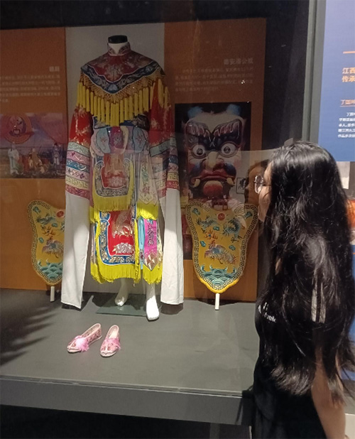 三、“鄱阳湖博物馆之行:与家乡根脉的相遇” 8月4日,团队成员吴璇同学走进家乡的鄱阳湖博物馆,游走馆内,赣剧的婉转唱腔、脱胎漆器上繁复精美的纹路、湖口草龙朴拙的形态都传递着江西乡土的生机。此时非遗不再是遥远的历史符号,而就流淌在家乡的血脉里。