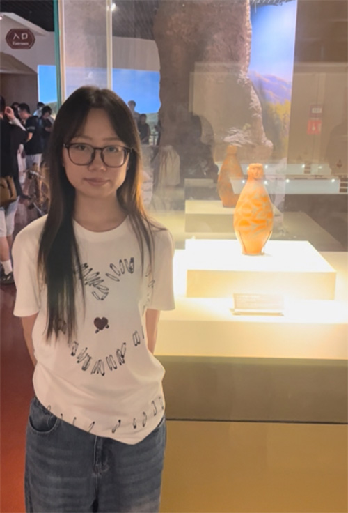 二、“陶土上的文明接力:从仰韶陶瓶到非遗工坊” 8月4日,团队成员魏丹同学前往甘肃省博物馆。作为该博物馆镇馆之宝之一的“人头形器口彩陶瓶”是新石器时代的祭祀容器,五千年历史折叠成生动的当下,大家看到了众多非遗传承人操练着五千年前的泥条盘筑法,锻造着同样的弧形瓶腹,博物馆玻璃柜中静默的陶瓶,在这些传承人的陶轮上旋转成鲜活的传承。