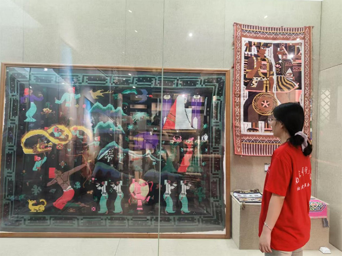 四、“西南山城非遗焕新,传承中织就千年传奇” 8月7日,团队成员王璐瑶走进重庆三峡博物馆,聆听针线与金属讲述的古老的故事。在重庆的青山绿水间,土家族的织锦、苗族的银饰、侗族的刺绣都是祖先对自然的礼赞;苗家姑娘的百褶裙摆,藏着十二个月的时序轮回。这些非遗技艺,不仅是手艺,更是一个民族活着的记忆。