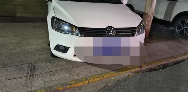 图为一辆汽车违规横跨在盲道上,完全截断了盲道的通行路径,导致盲道失去其引导作用,视障人士若从此处经过,极易陷入危险。